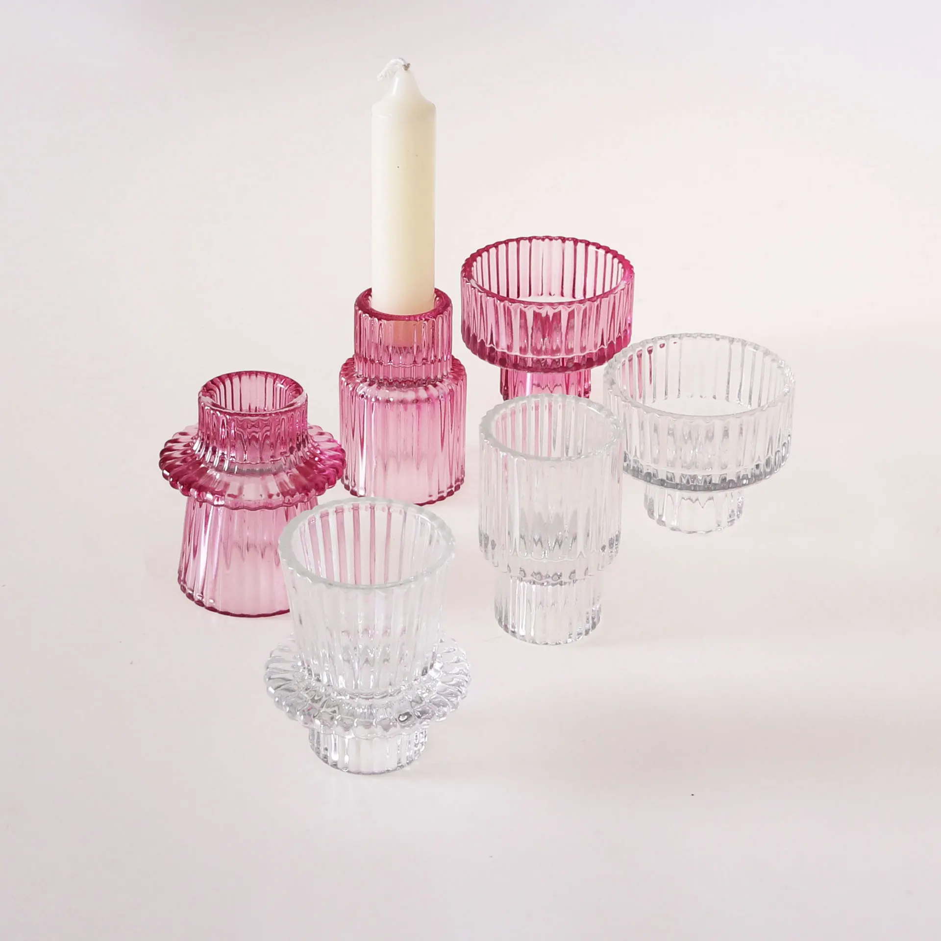 Glass Ribbed Candle Holder Set Wedding Table Centerpieces Taper Pil...