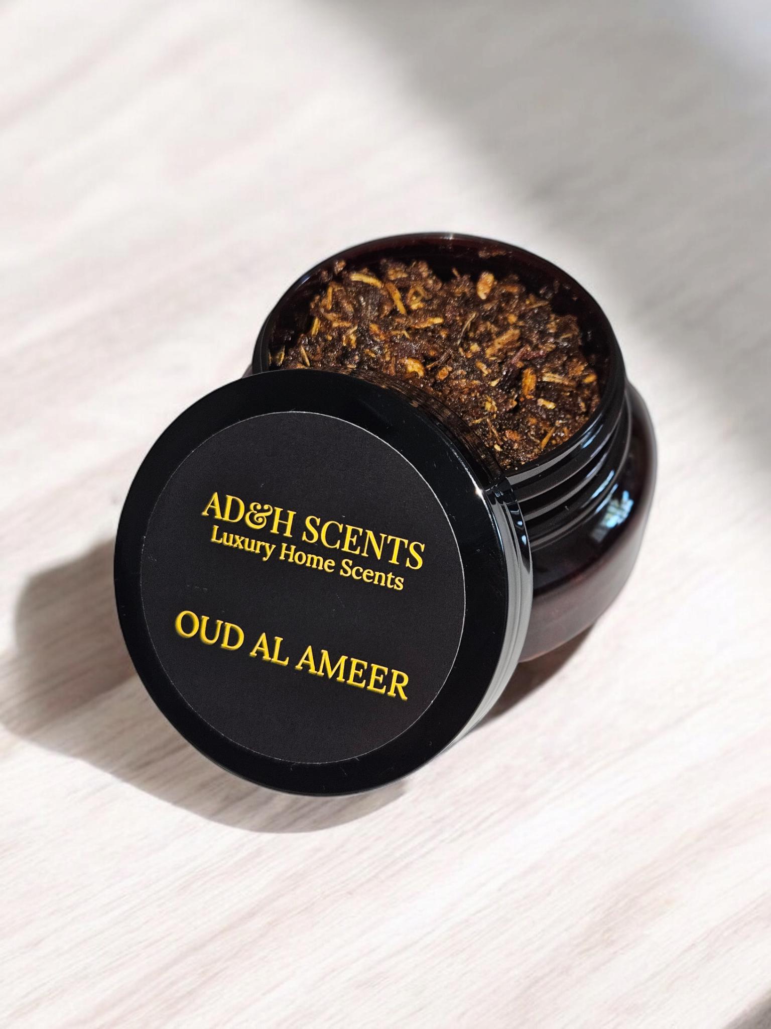 "Immerse yourself in a noble and captivating atmosphere with our handcrafted \"Oud Al Amee...