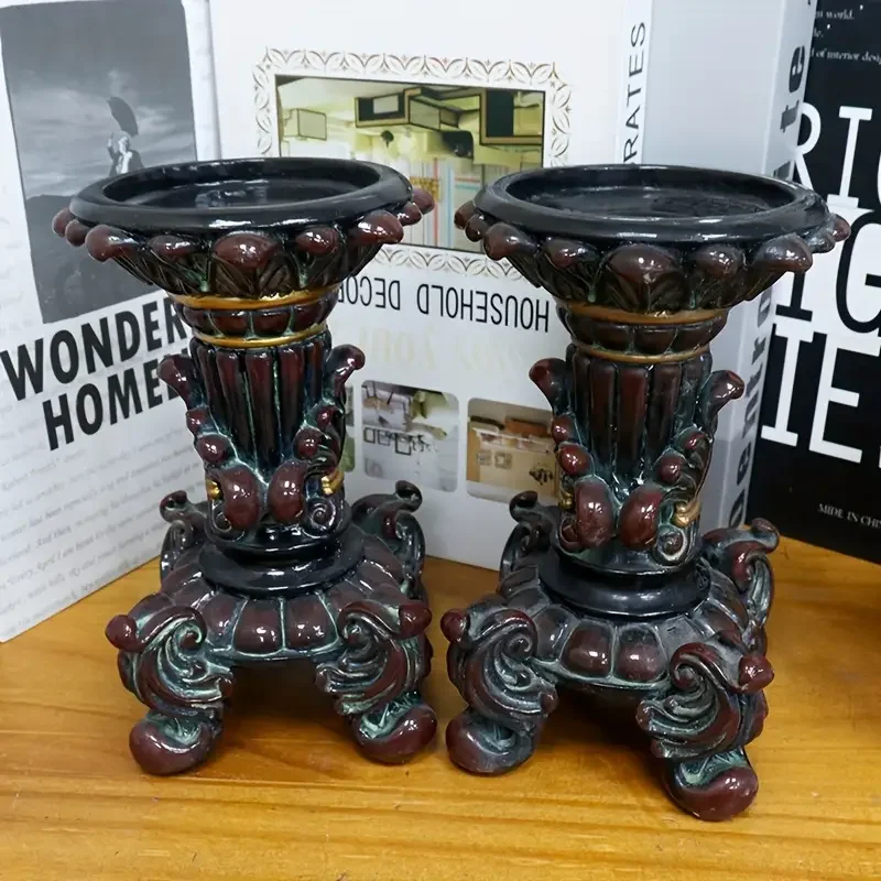Baroque-Style Resin Candlesticks Hand-painted Ornate Artistic Desig...