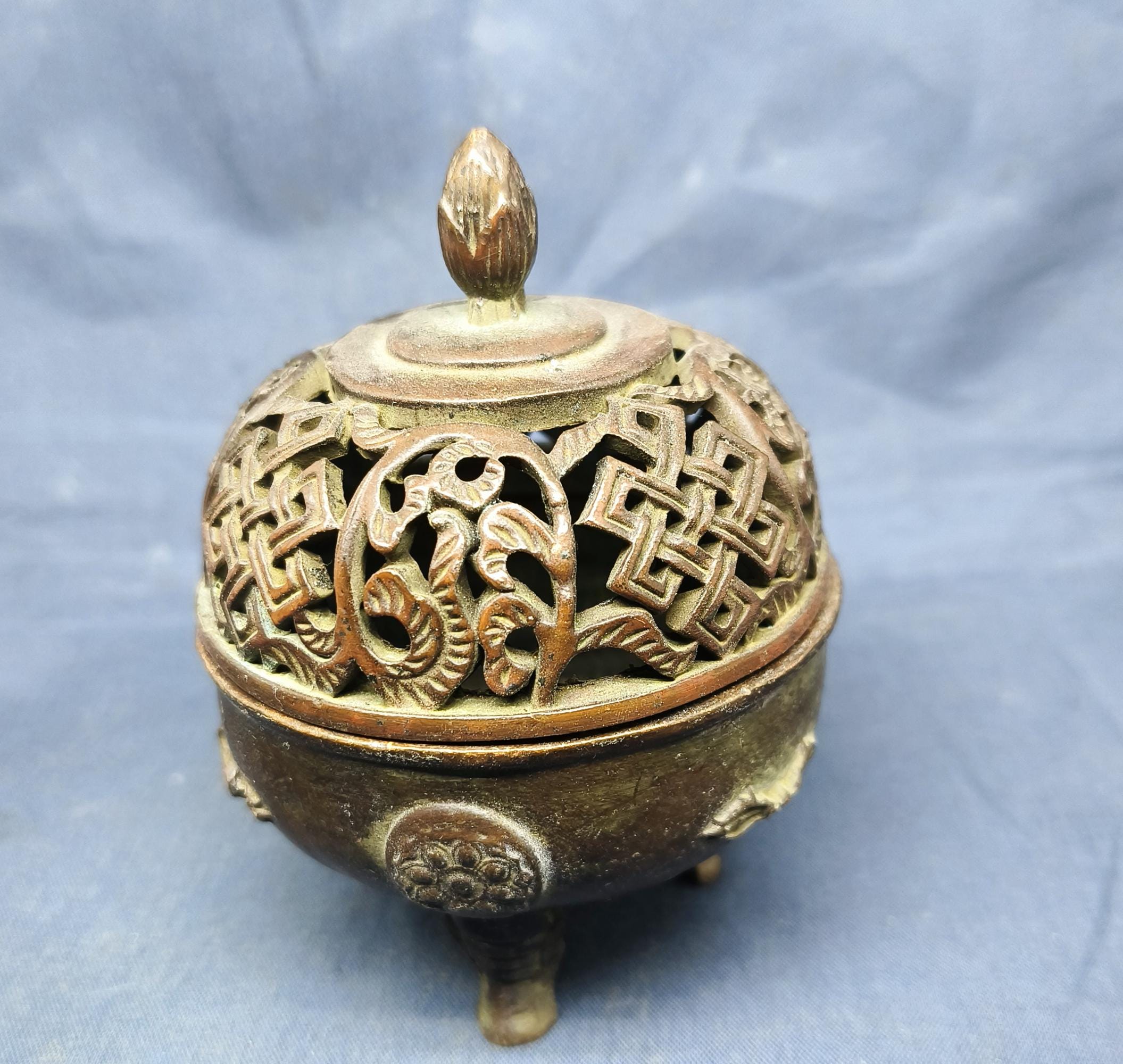 Vintage Bronze Lotus & Knotwork Incense Burner: Ornate Meditati...