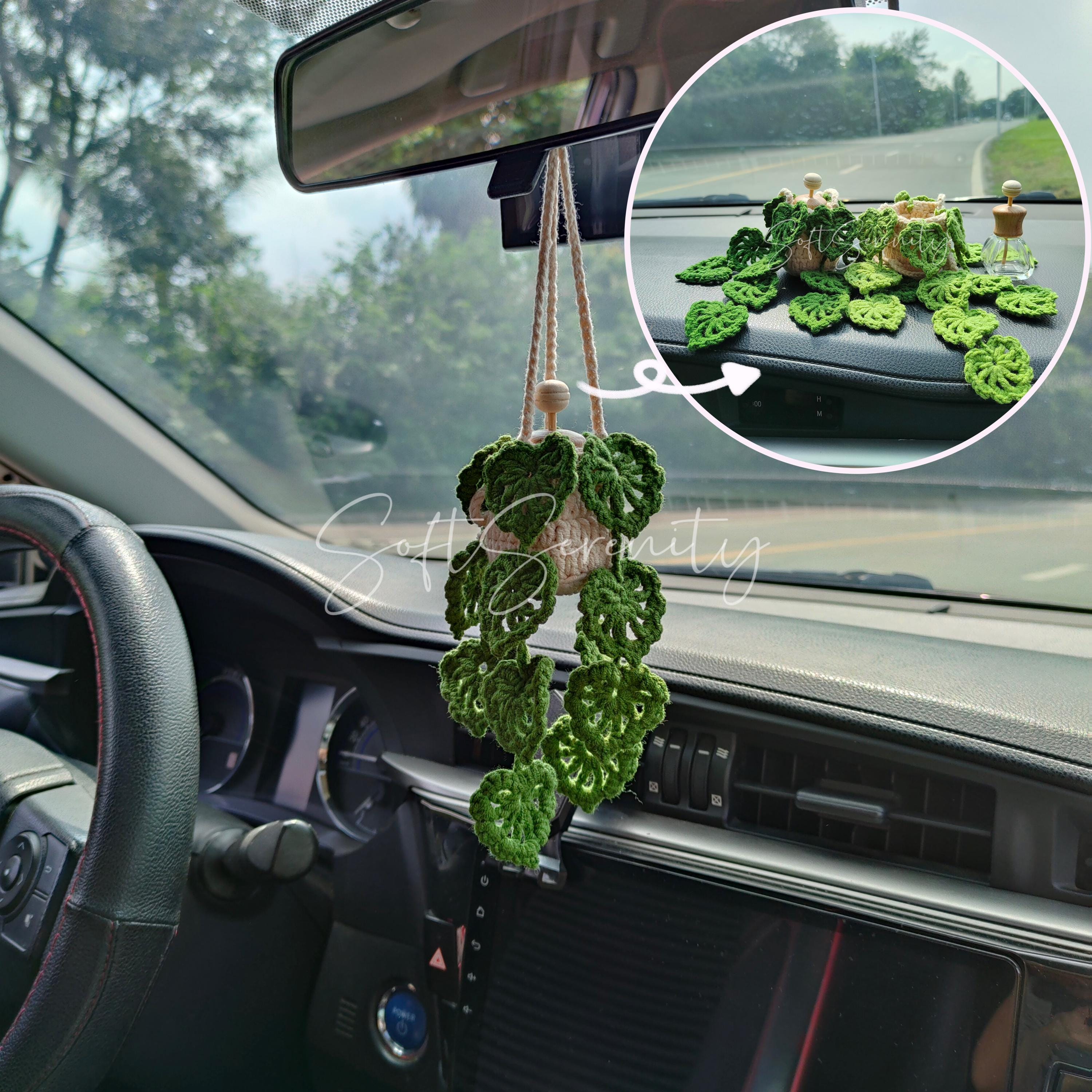 Crochet Monstera, Car Mirror Hanging, Green Plant, Car Plant,Red St...