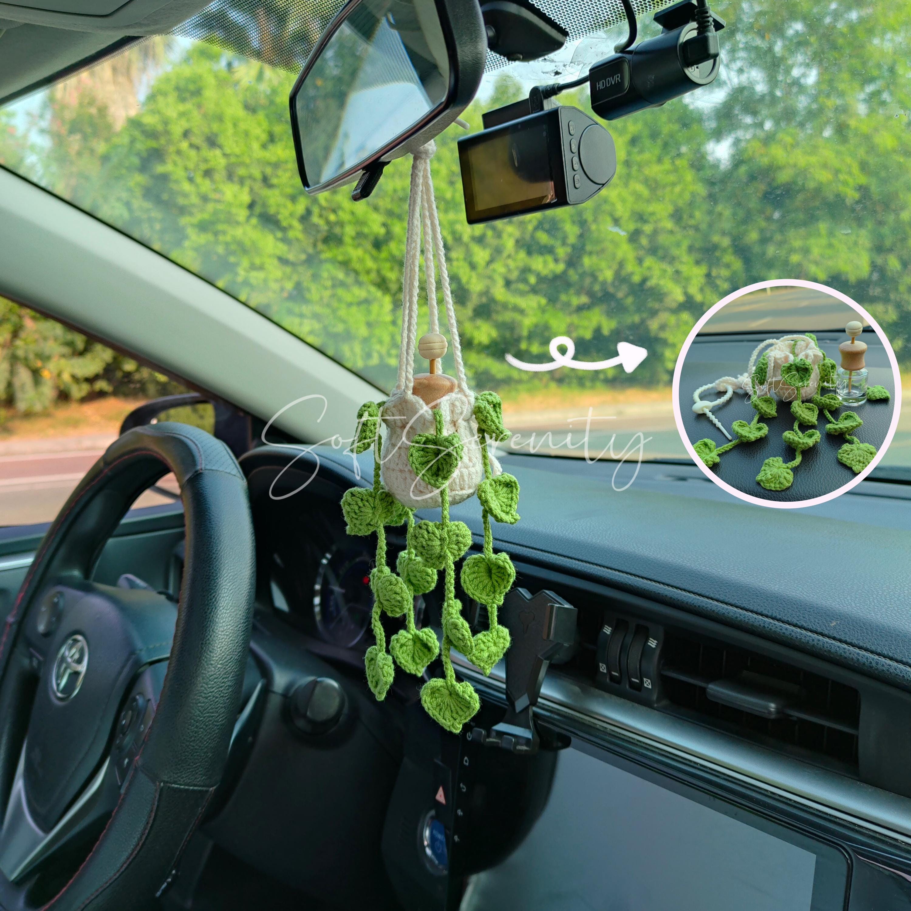 Crochet Car Plant, Car Mirror Hanging, Green Plant, Red Strawberry,...
