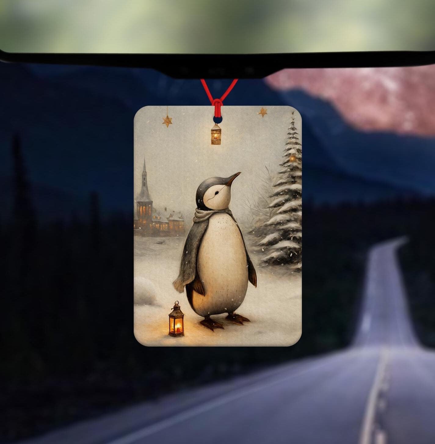 Penguin car air freshener - Christmas penguin - car accessory - wildlife gift - penguin with lamp ar...