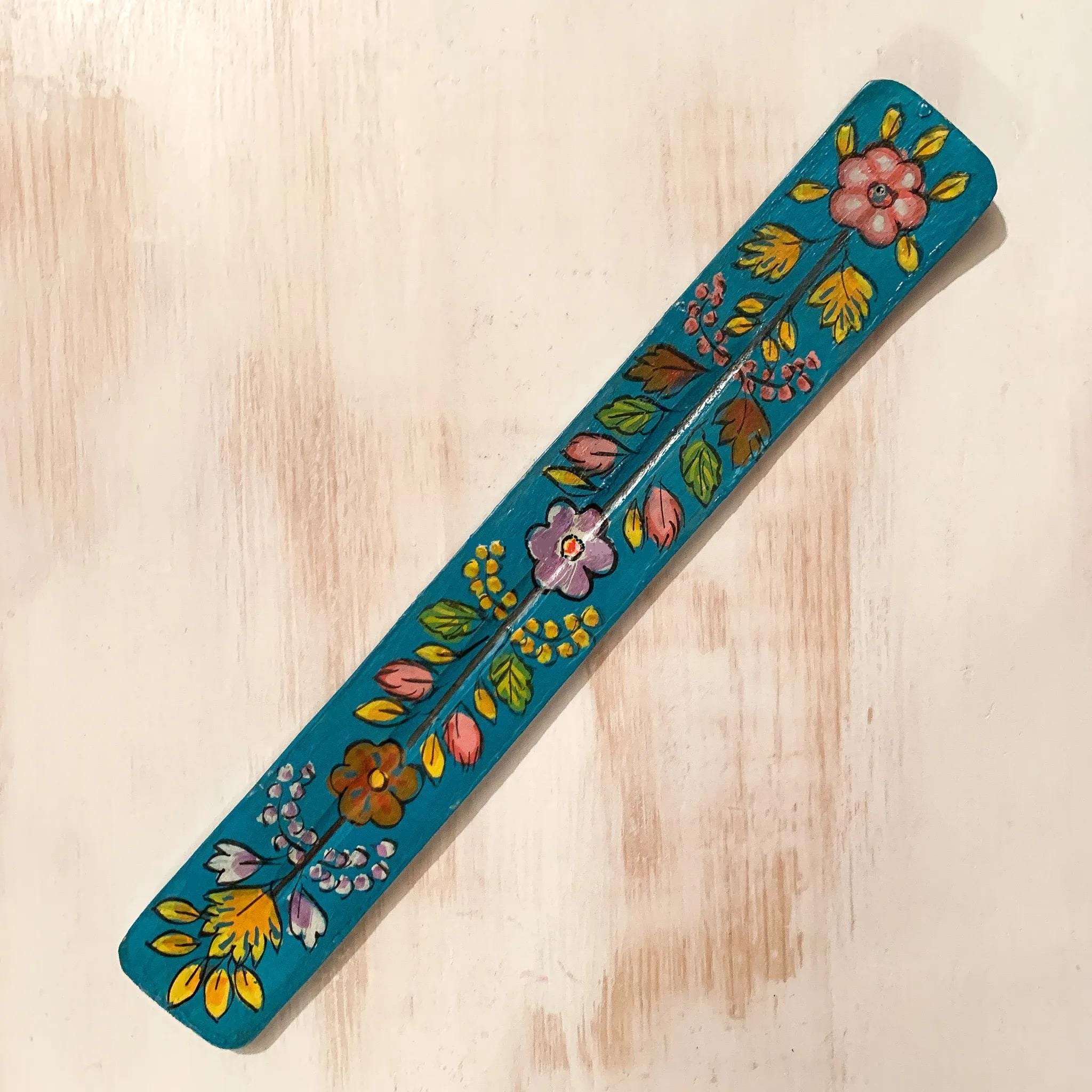 Handpainted Wooden Incense Stick Holder, Boho Incense Burner, Flora...