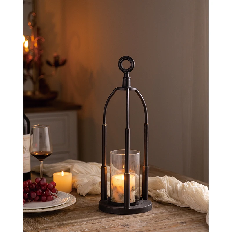 Rustic Style Metal Candle Lantern Black Candle Holder with Tempered...