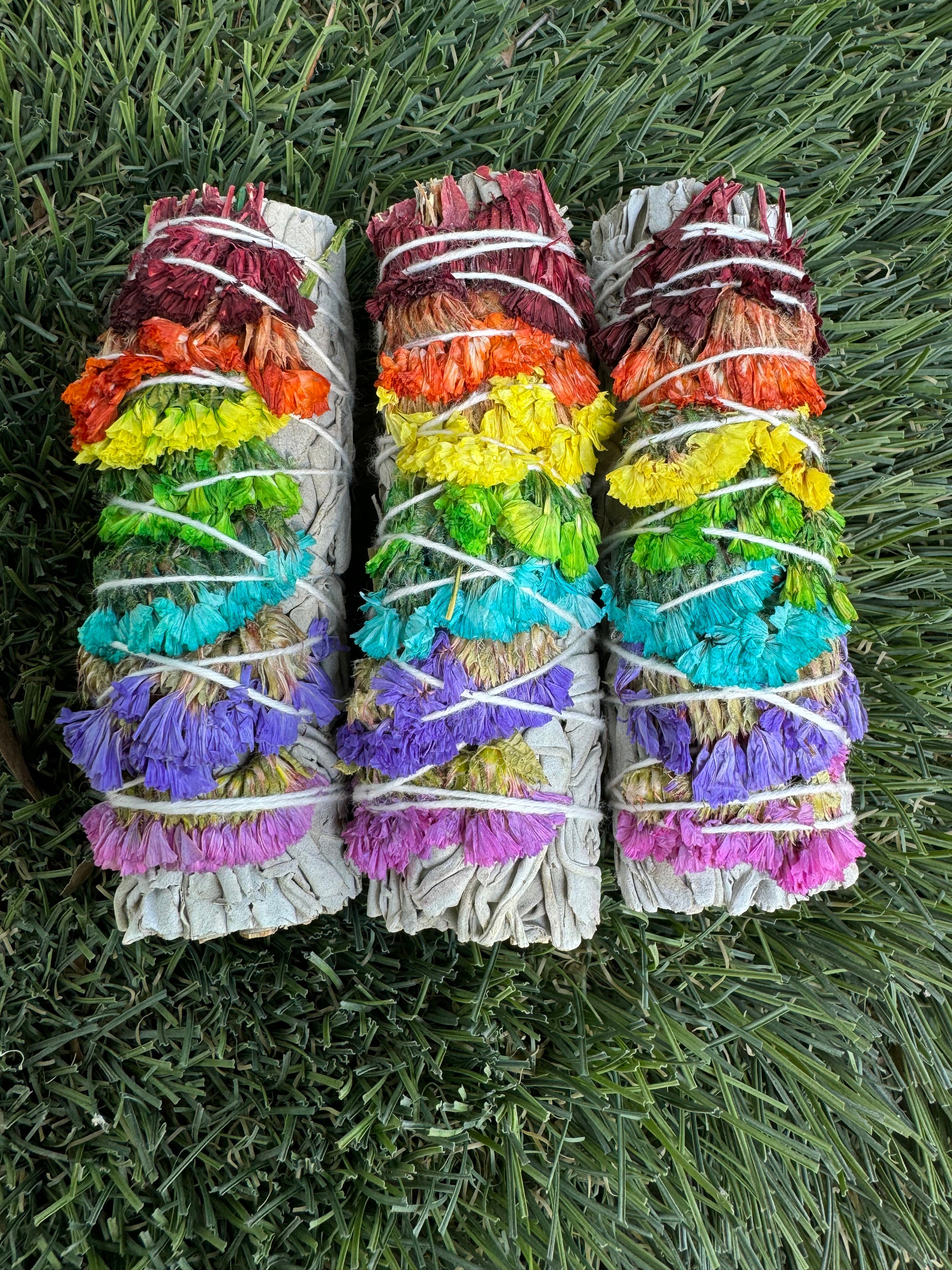 "Organic White Sage with 7 Chakra Sinuata Flowers Bundles 4\&q...