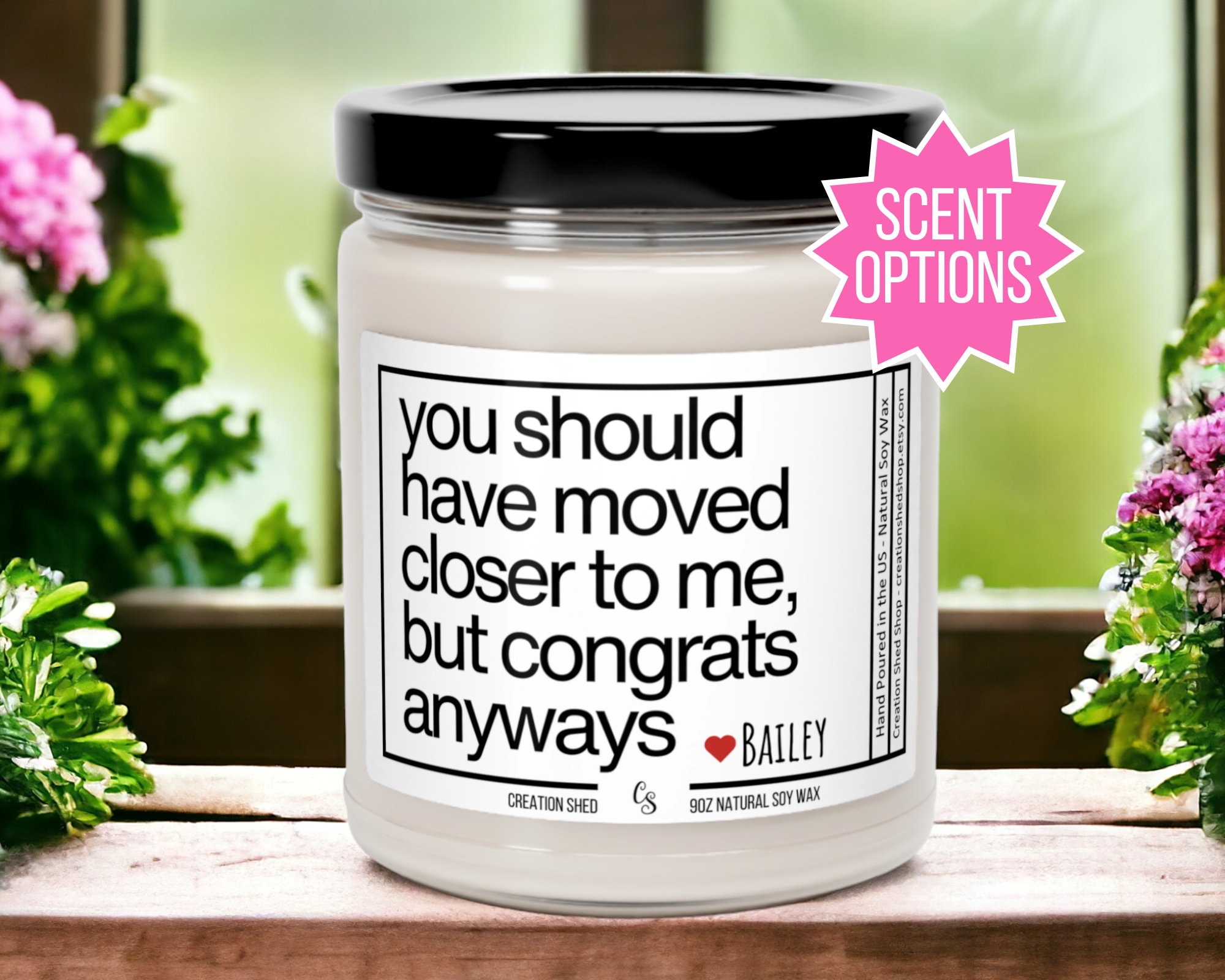 "Personalized, \"You Should Have Moved Closer To Me, But Congrats Anyways\" Candle! T...