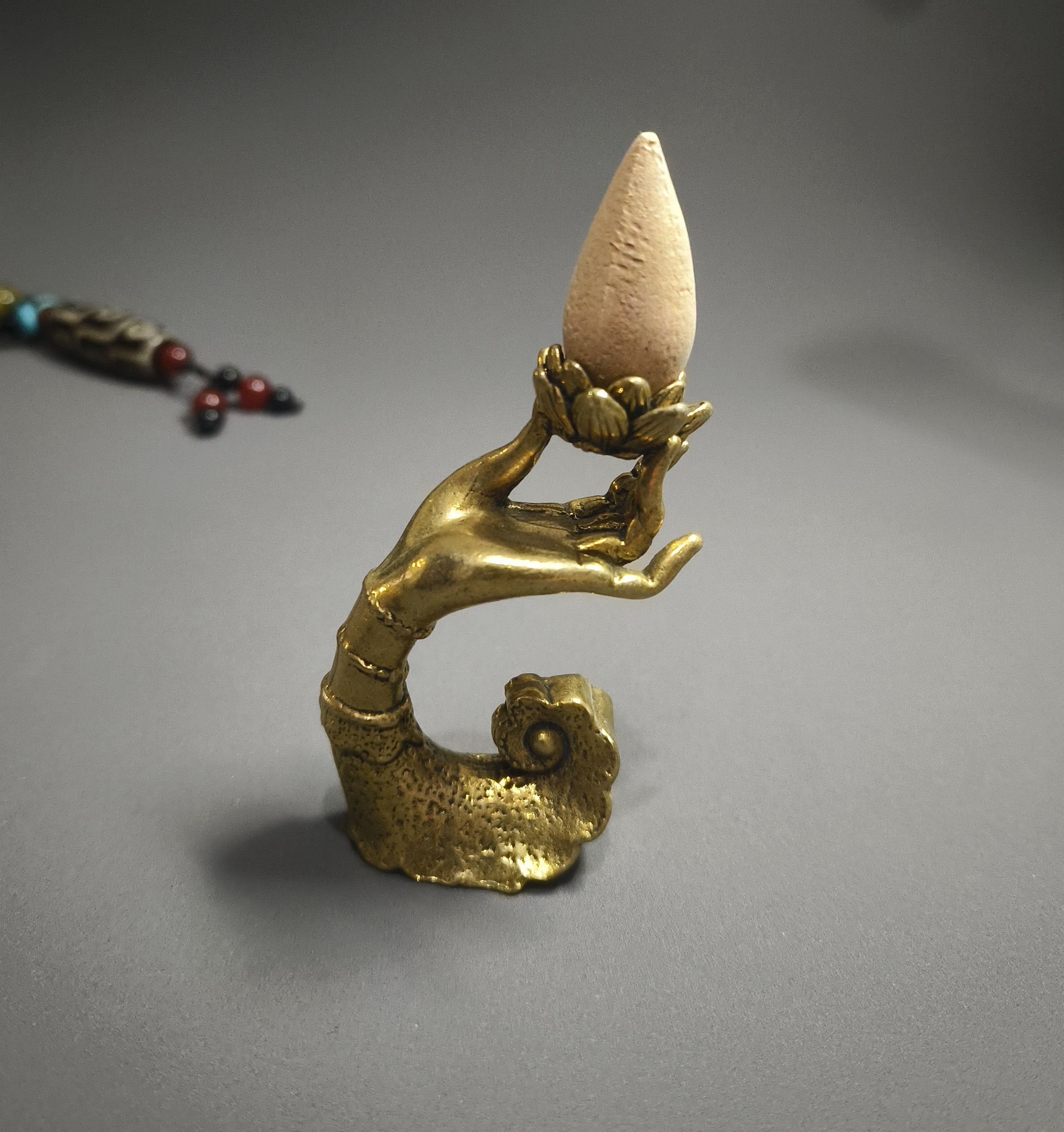 Solid Brass Hand Incense Holder, Small Aromatherapy Ornament