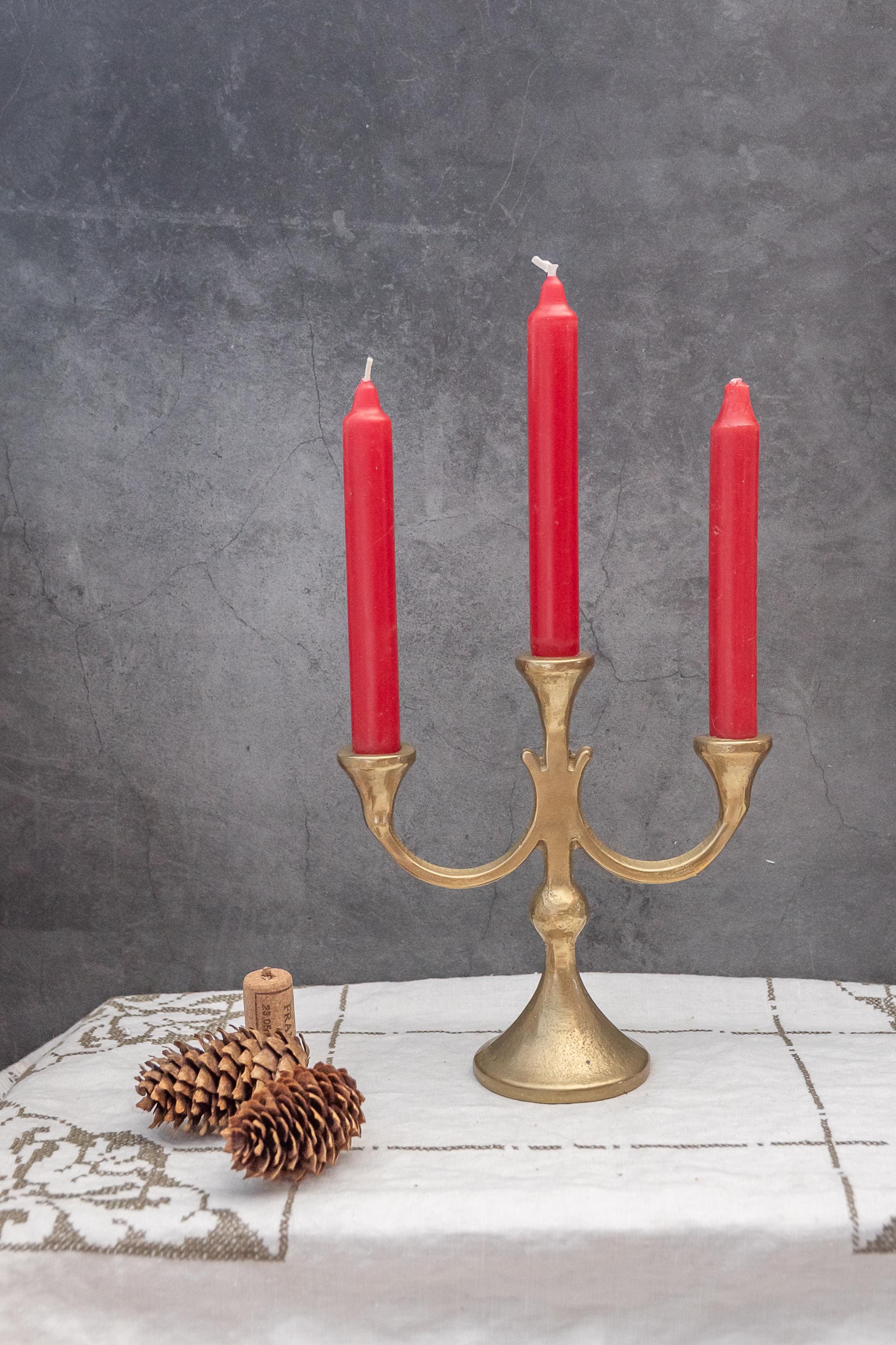 Antique Candelabra Solid Brass Vintage Brutalist Style Mid Century Modern Home Decor Candlestick Can...