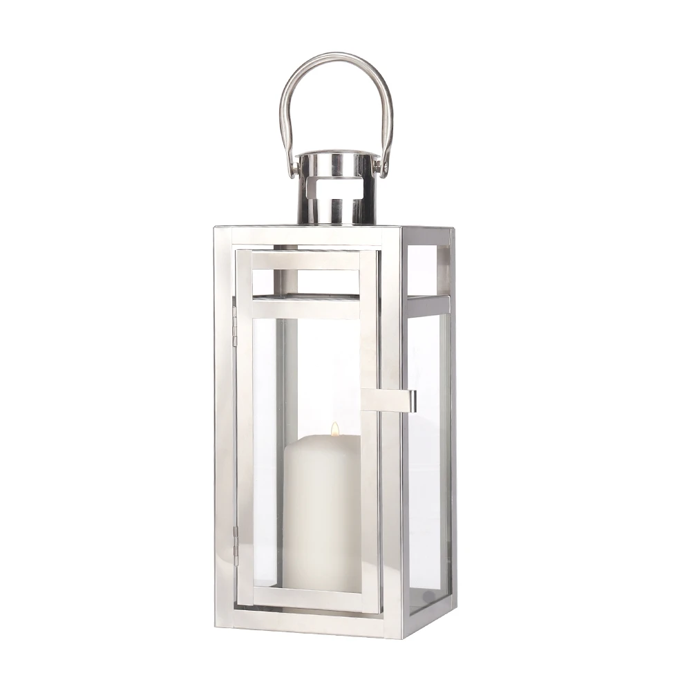 Small Metal & Glass Stainless Steel Silver Candle Lantern Tall ...
