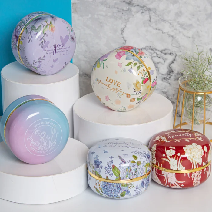 Small Round Candle Tin Container Luxury Design Tea Storage Metal Ti...