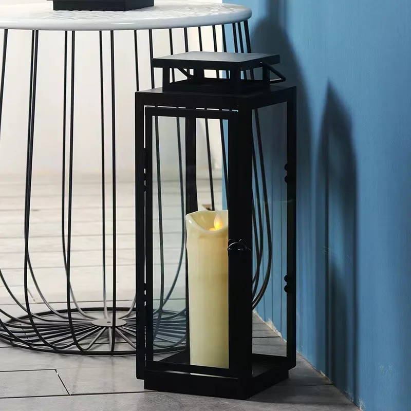 High Portable Iron Glass Lantern Windproof Outdoor Floor Candle Lan...