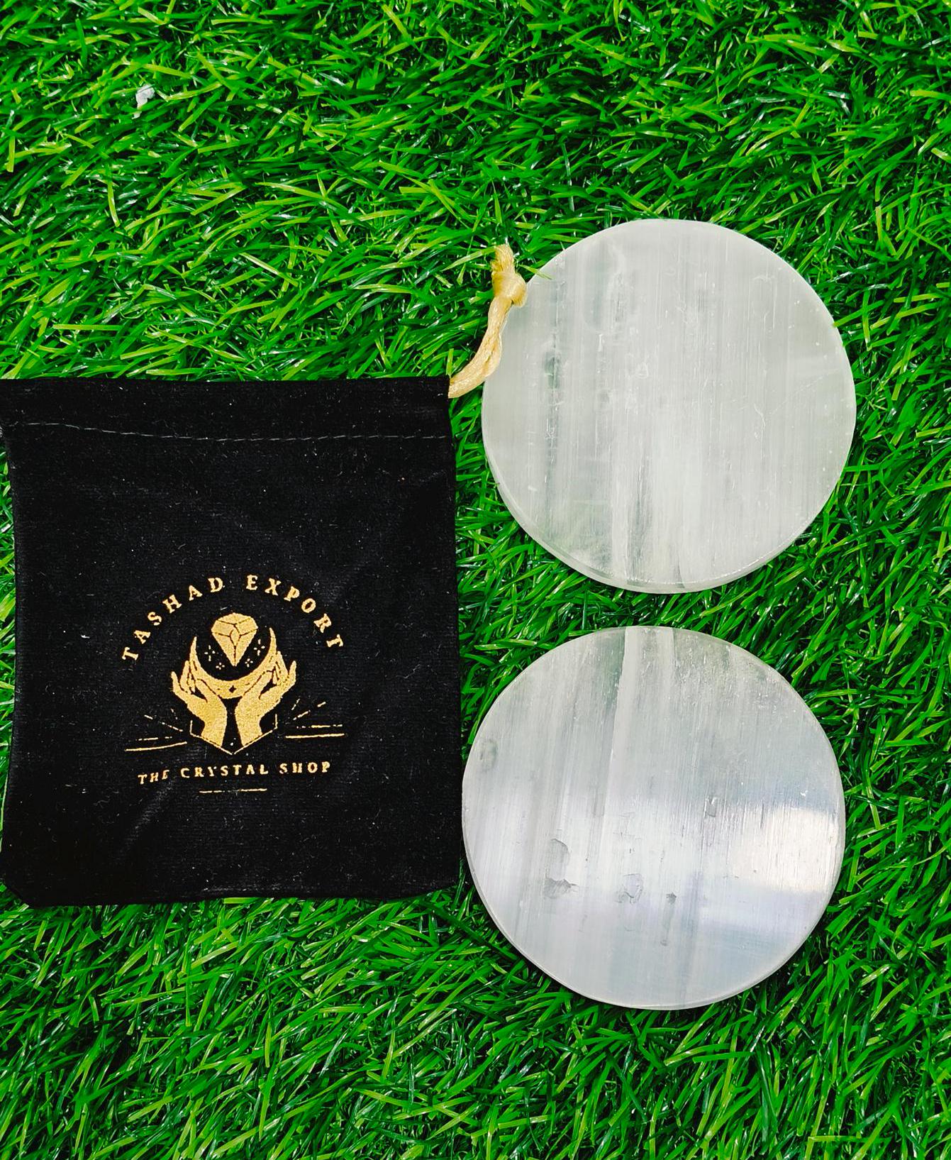 "Handmade Polished Selenite Round Charging Plates Size 3\" inch Round Plates Crystal Clean...