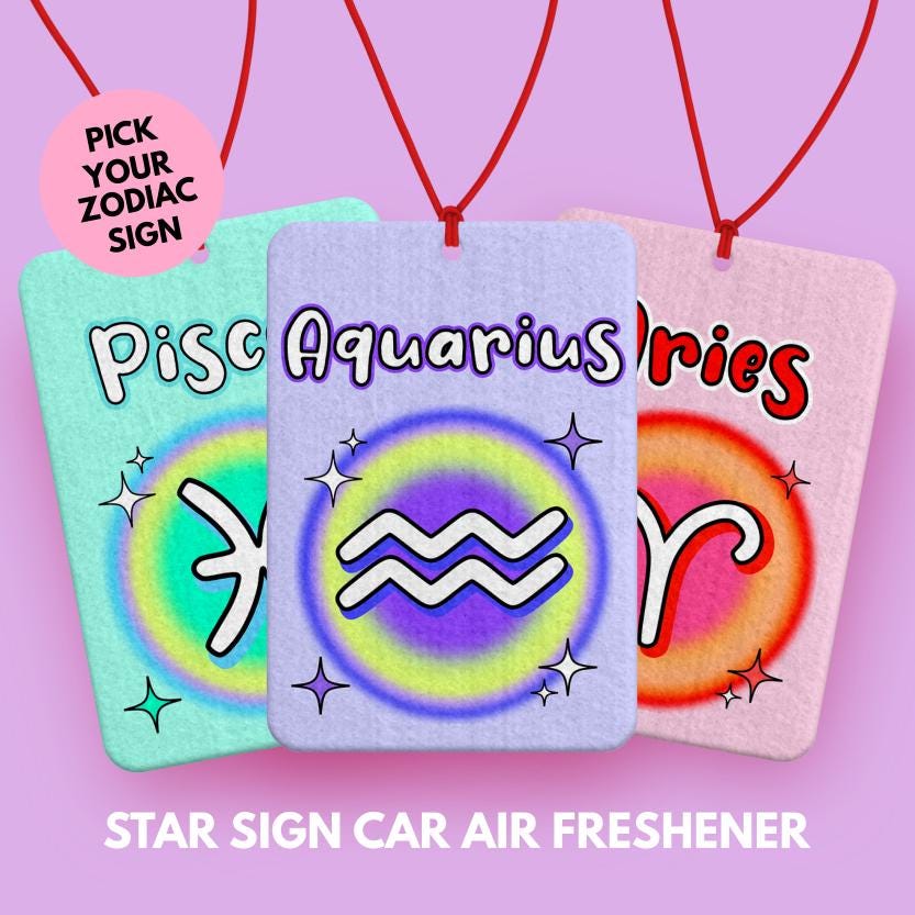 Zodiac star sign Car Air Freshener - Fun & Cute Star Sign Gifts with Colorful Aura Designs Add a...