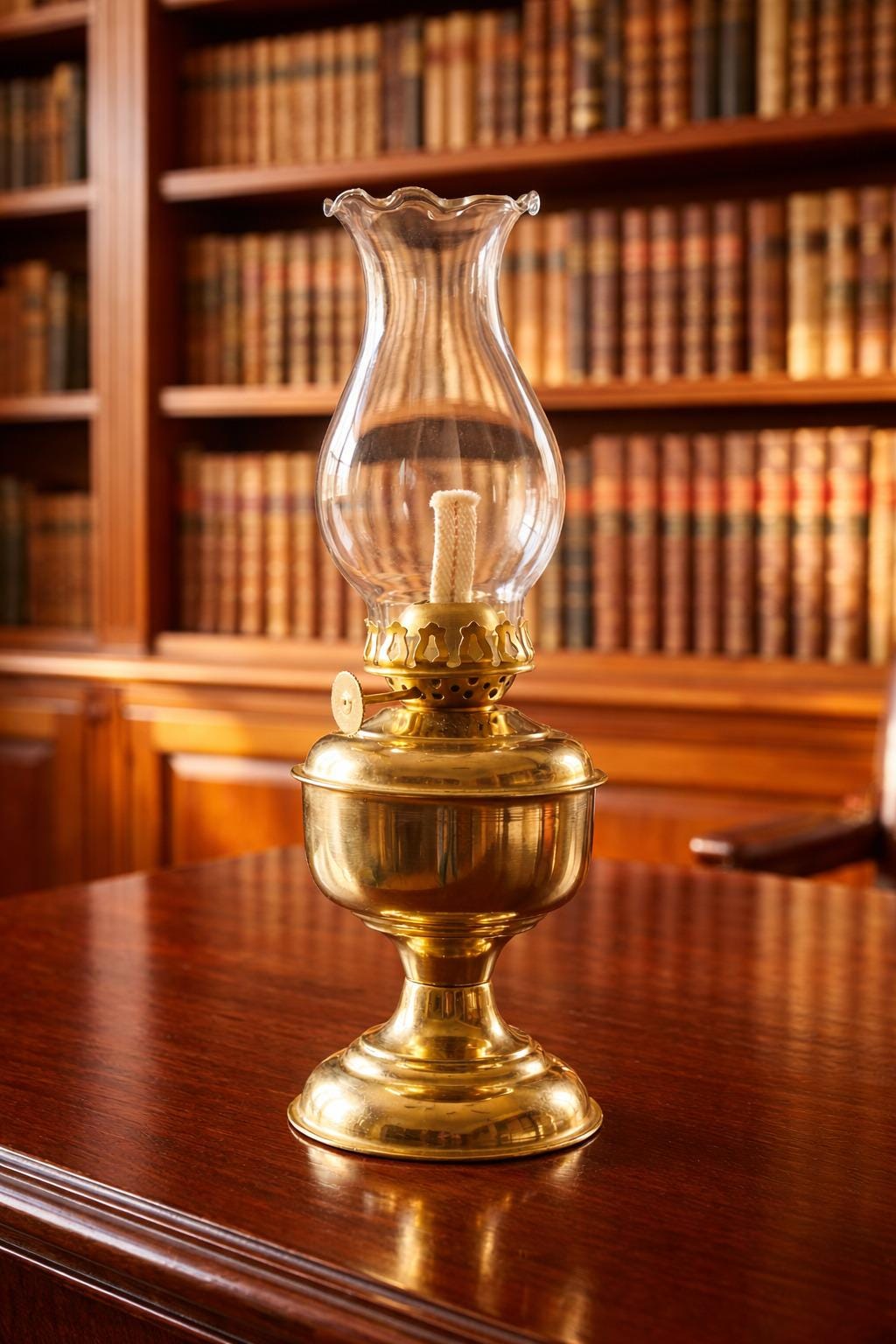 Vintage Brass Oil Lamp with Glass Chimney Antique Style Kerosene Ta...
