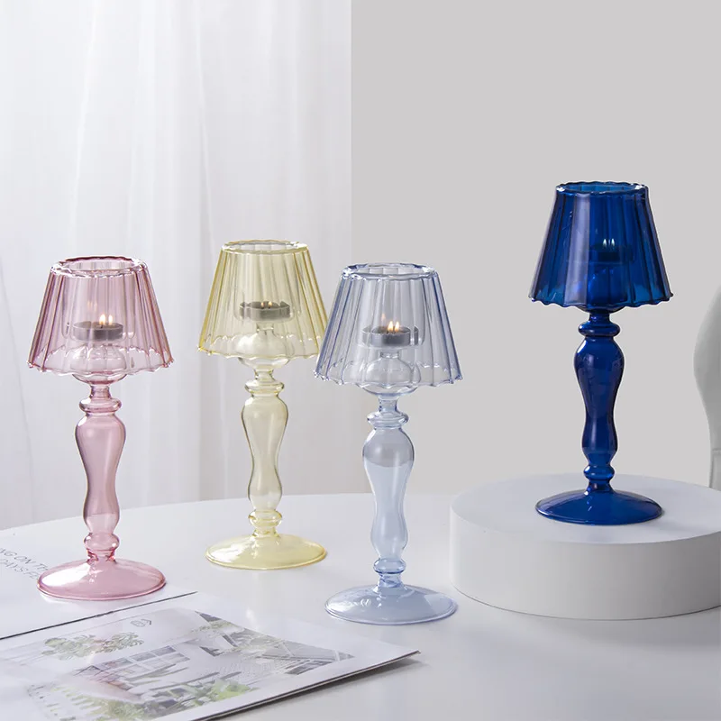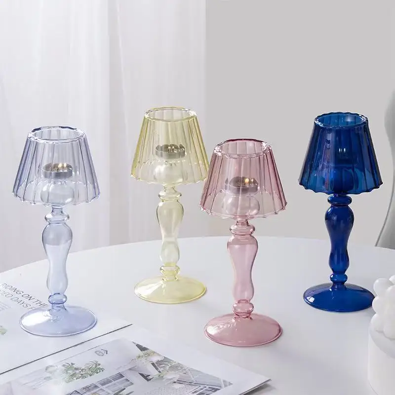 Colored Glass Desk Lamp Shape Tealight Candle Holder Glass Wedding ...