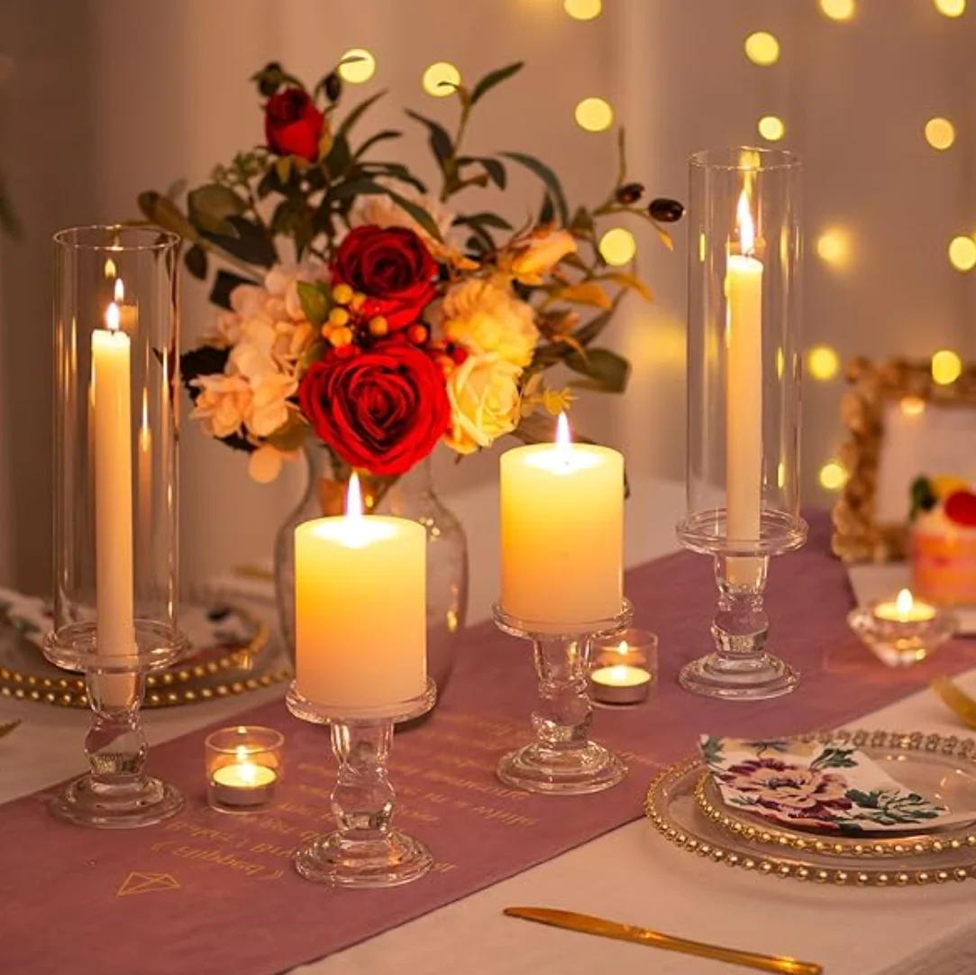 Tall Clear Glass Candle Holder Taper Pillar Candlestick Holders Wed...
