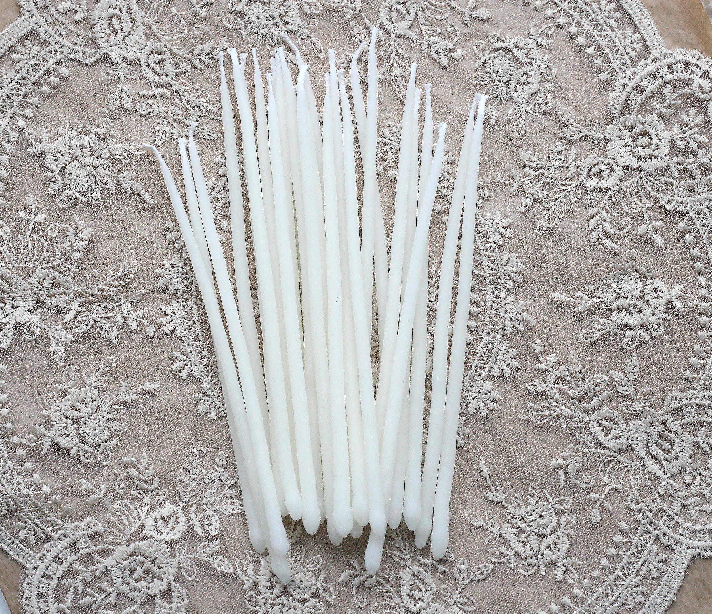 Hand Dipped Beeswax Taper Candles: Thin White Meditation Candles