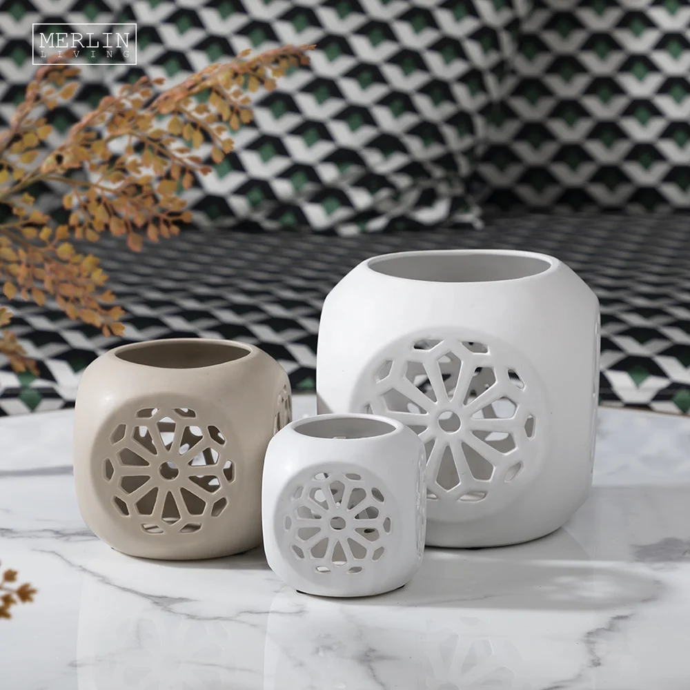 Merlin Living Nordic Ceramic Tea Light Holders Openwork Engraving D...