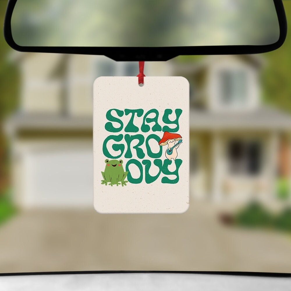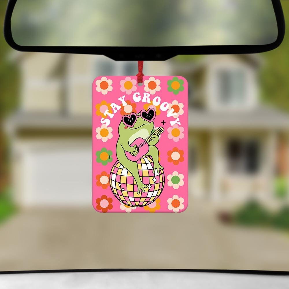 Stay Groovy Frog Car Air Freshener, Funny Car Air Freshener, Car Ac...