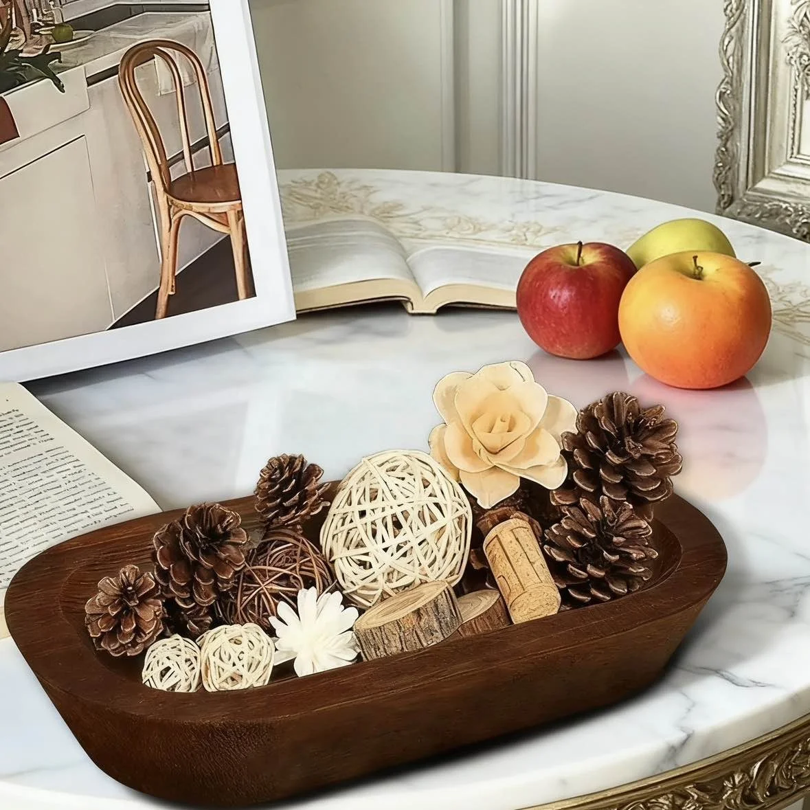 Farmhouse Dough Bowl Candles Decoration Wood Tree Shaped Tree Dough...