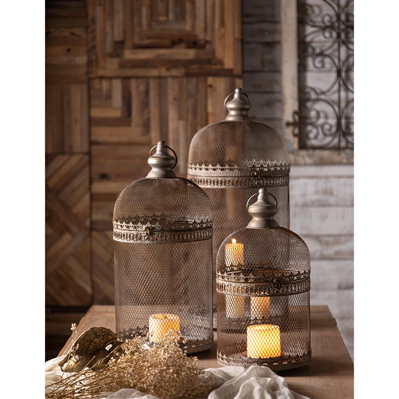 Vintage Tea Light Candle Holders 3 Pcs Distressed Bird Cage Lantern...