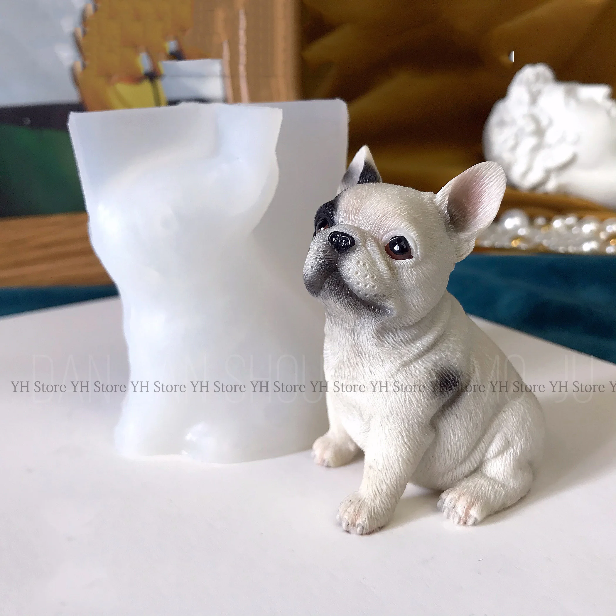 Bull Dog Epoxy Resin Silicone Mold Home Ornament Plaster Tools Birthday Candles 3D Dog Mold Cute Pup...