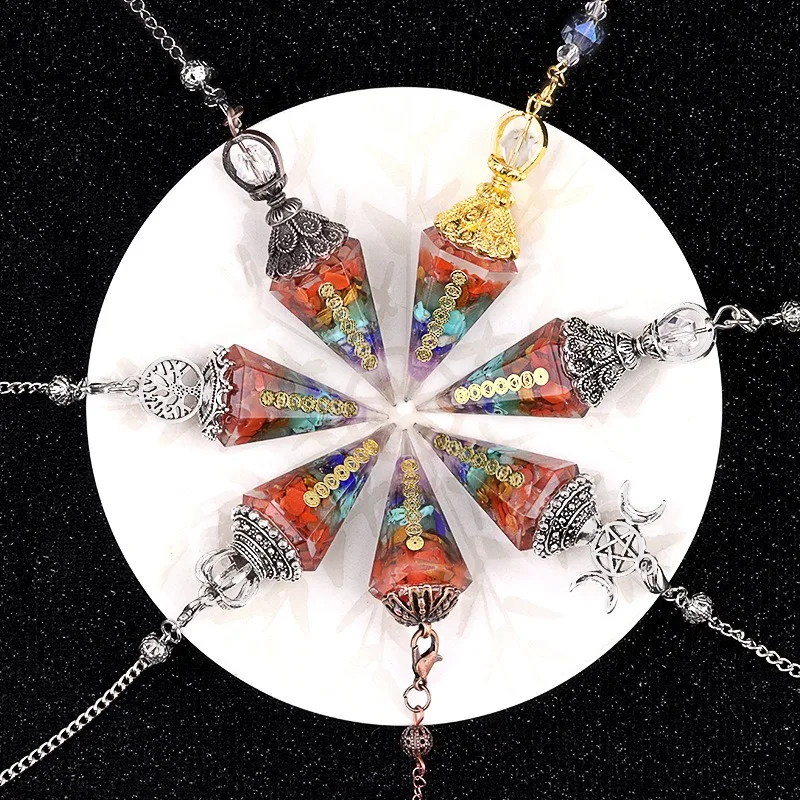 Handmade Chip Stones Orgone 7 Chakra Pendulum for Dowsing Reiki Nat...