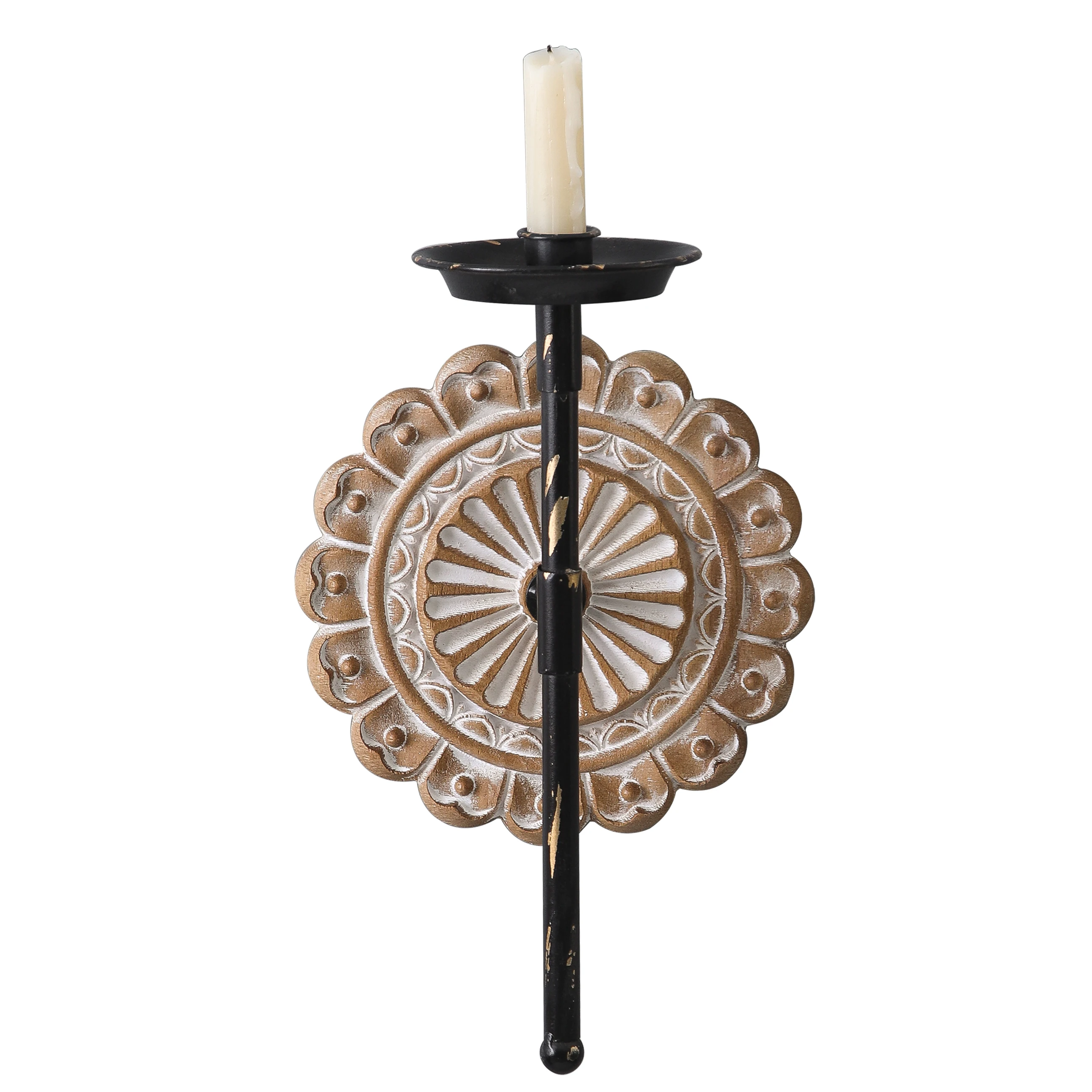 Handmade Black Iron Wood Pattern Old Wall Lamp Candlestick Wall Mou...