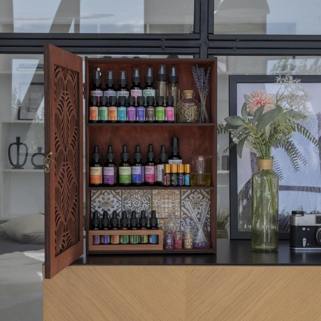 Wall Mounted Essential Oil Cabinet, Wooden Oil Storage Cabinet, Sma...