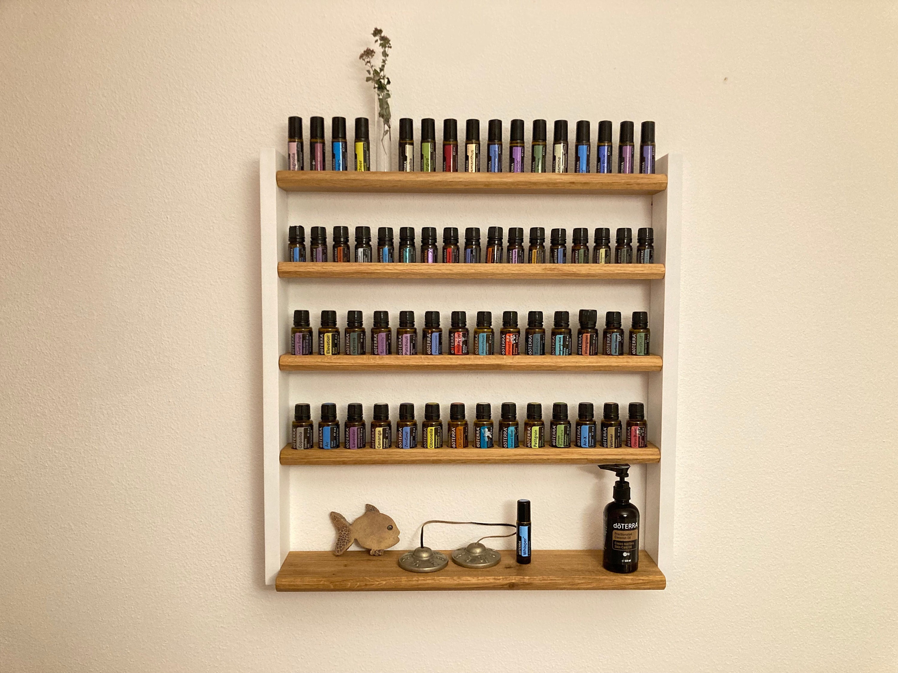 This wall-mounted oil rack is ideal for anyone using 15ml and 5ml oils, as well as 10ml roll-on oils...