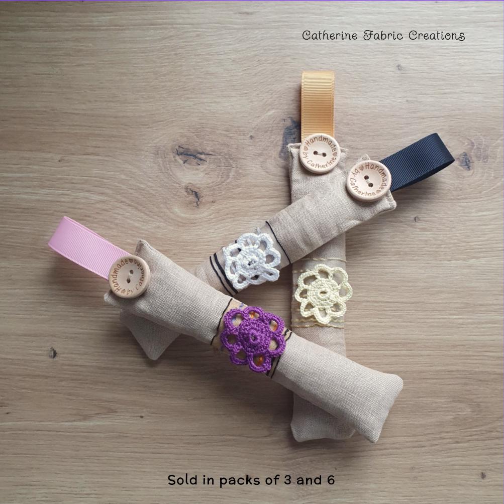 Pack of 3 or 6 lavender sachets with crochet flower and loop, wardr...
