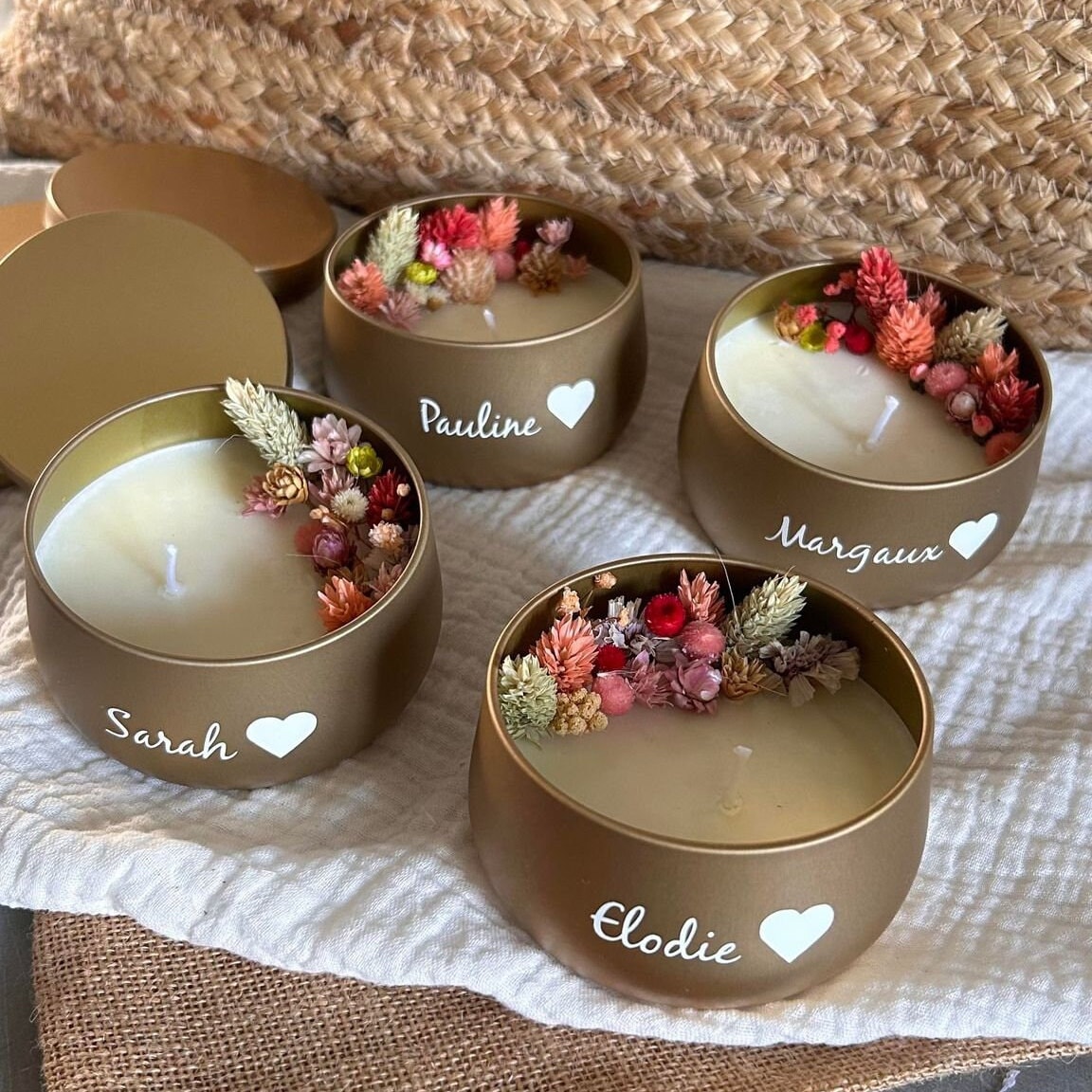 Personalized floral candle, soy wax, dried flowers, natural, person...