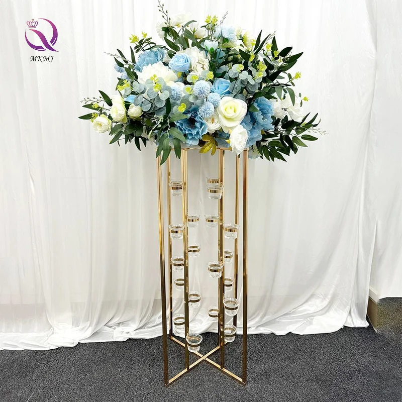 Stock Gold Wrought Iron Candle Holder Wedding Cross Decoration Flow...