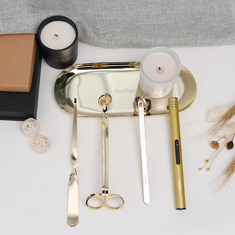 Luxury 5 in 1 Gold Wick Trimmer Snuffer Tray Dipper Candle Lighter ...
