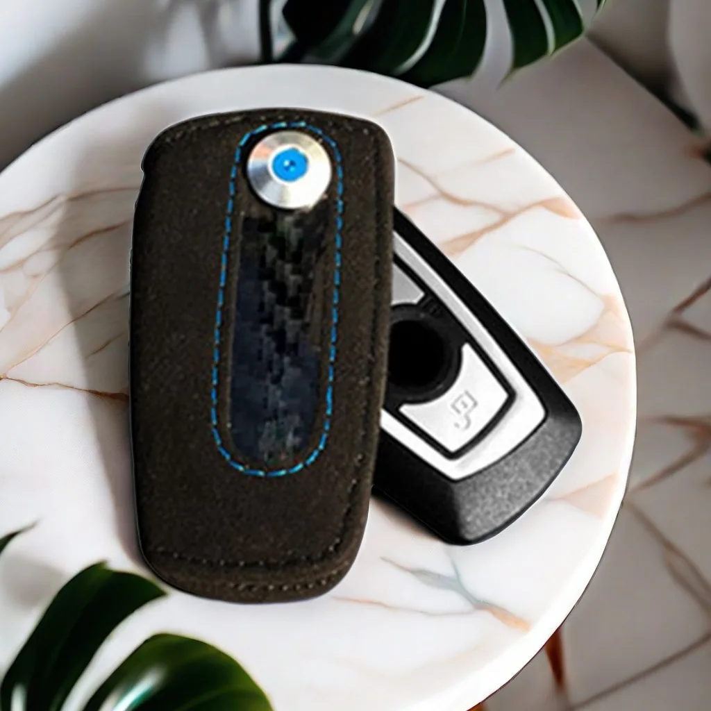 Suede Car Keychain Embroidery Leather Key ring , gun-black Unisex Keyring For BMW M3 M4 M5 (BMW M 3-...