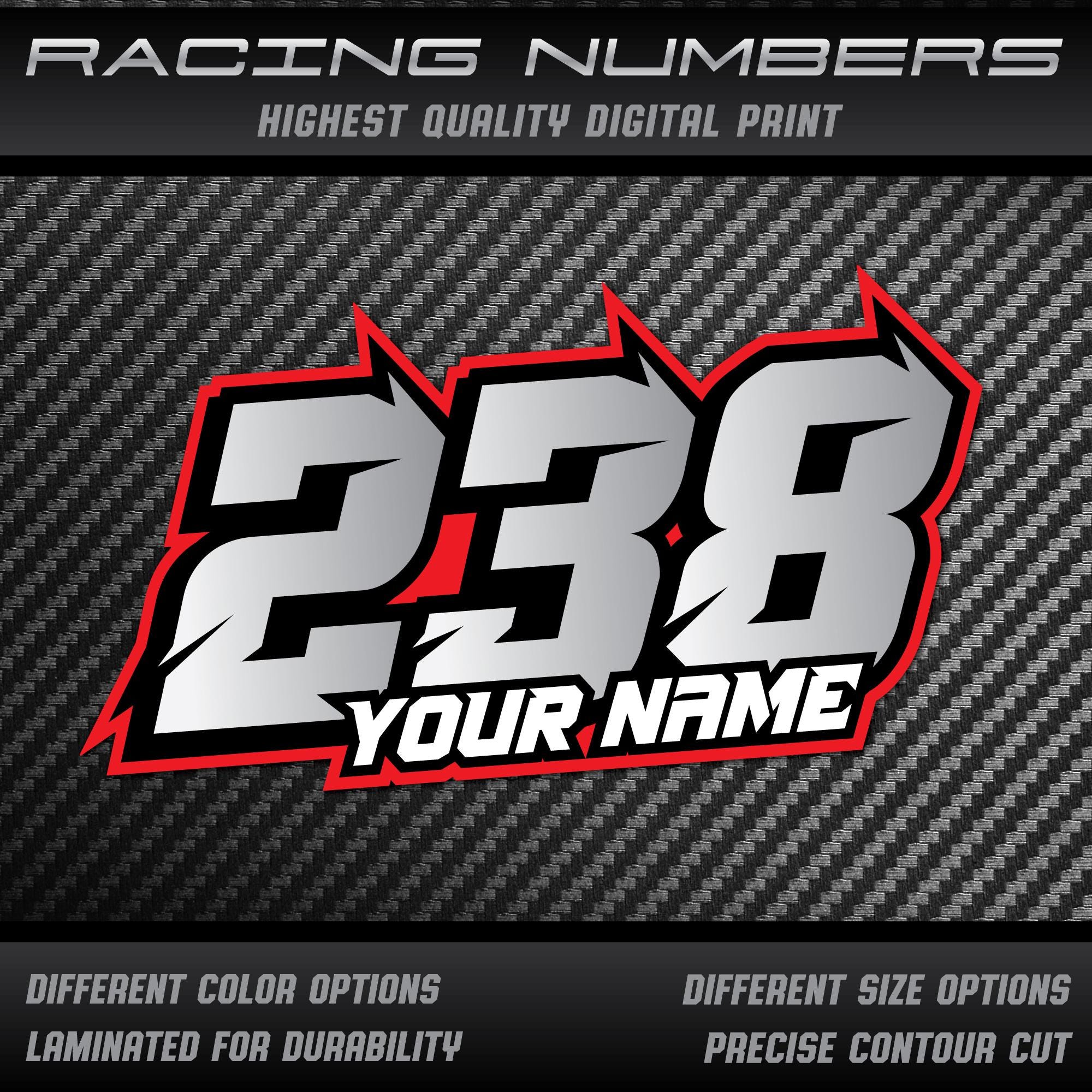 Custom Racing Numbers Includes up to (3) digits per order Each number set will be outlined with the ...