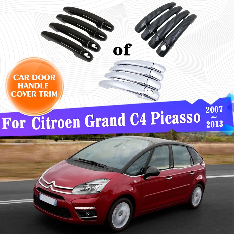 For Citroen Grand C4 Picasso 2007-2013 Car Door Handle Covers Gloss Black Carbon Fiber Chrome Stylin...