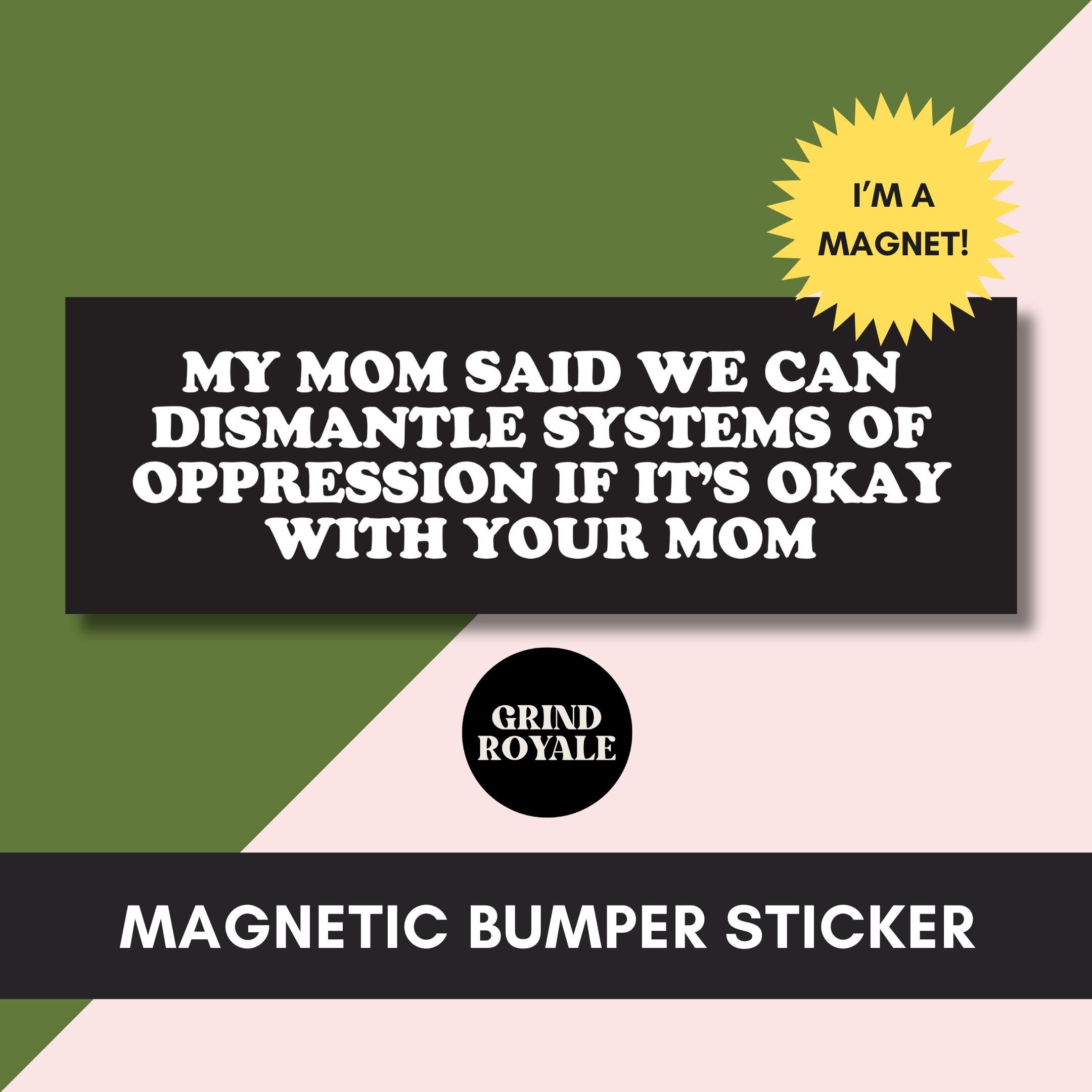 "\"My Mom Said We Can Dismantle Systems of Oppression\" Funny Car Bumper Magnet Add a...