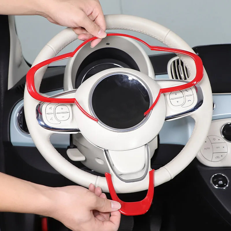 For Fiat 500 2016-2024 ABS Red Car Steering Wheel Button Decorative Frame Sticker Car Interior Acces...