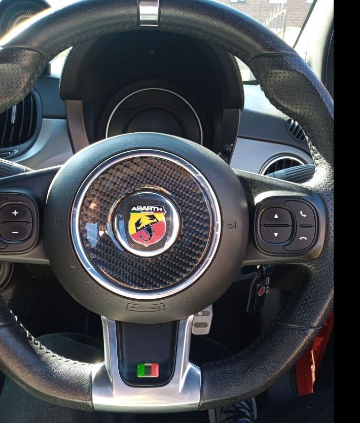 For Fiat 500 2010-2015 ABS Carbon fiber/Red Car Steering Wheel Butt...