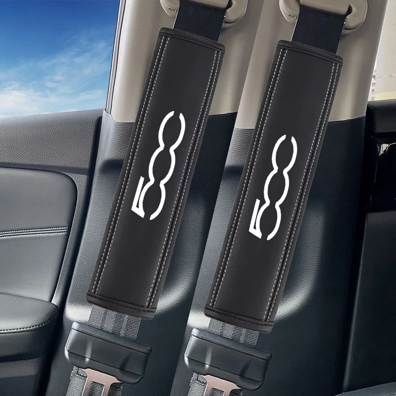 2Pcs Car Seat Belt Leather Safety Belt Shoulder Covers Interior For Fiat 500 500L 500S 500X 500C 500...