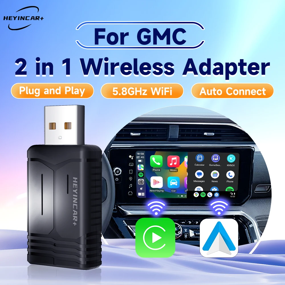 2025 NEW HEYINCAR 2in1 Wireless Carplay Adapter Android Auto Wireless For GMC Sierra 1500 CANYON TER...
