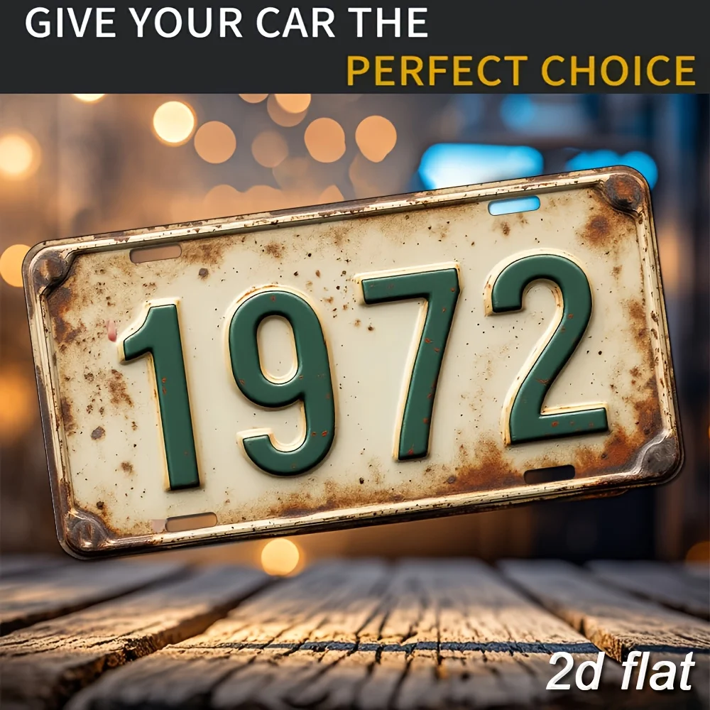 1972 Metal Wall Sign - Retro Car Front Plate Decor with Green Numbers, Rustic Distressed Look for Ho...