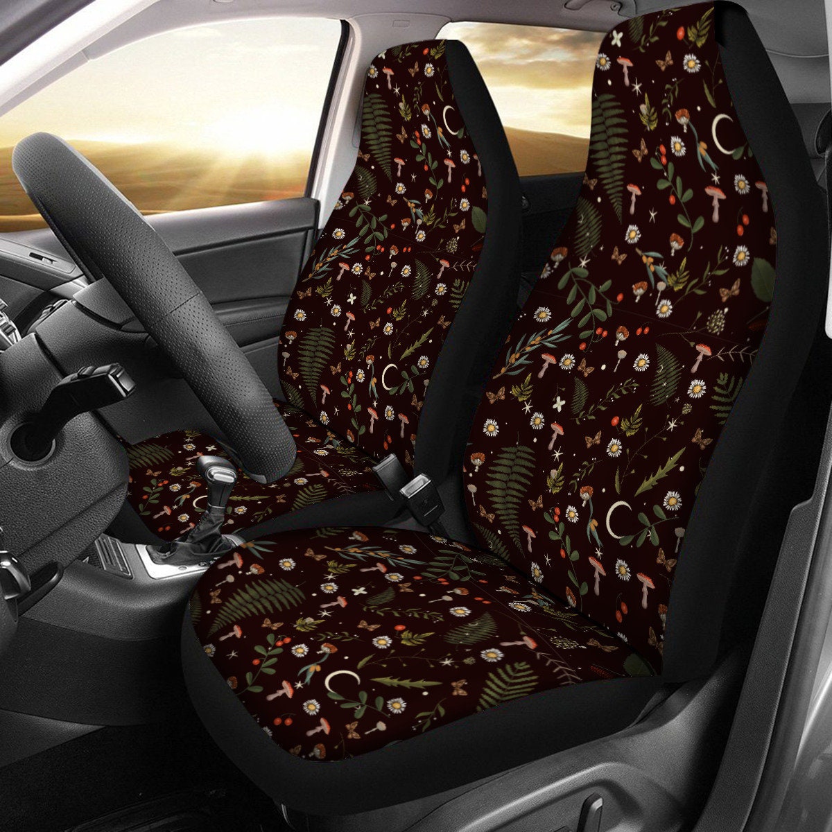 Black Mushroom Car Seat Cover Full Set, Cottagecore Seat Covers for...