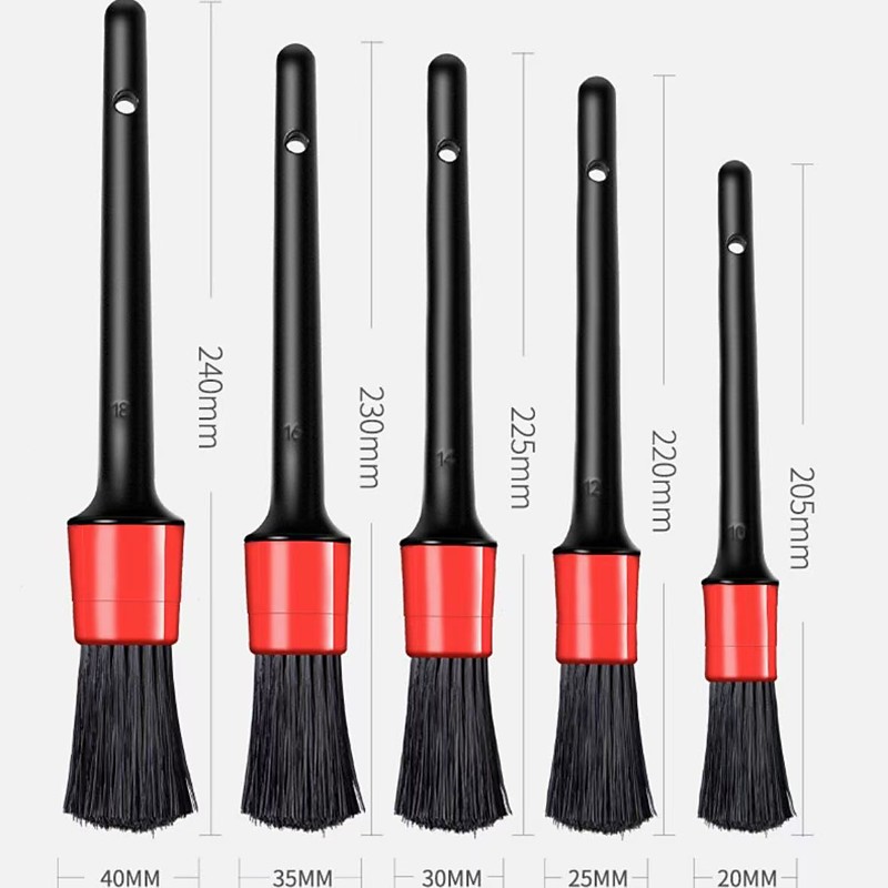 5pcs Car Detail Brush Set with Durable Plastic Handles, Black and R...