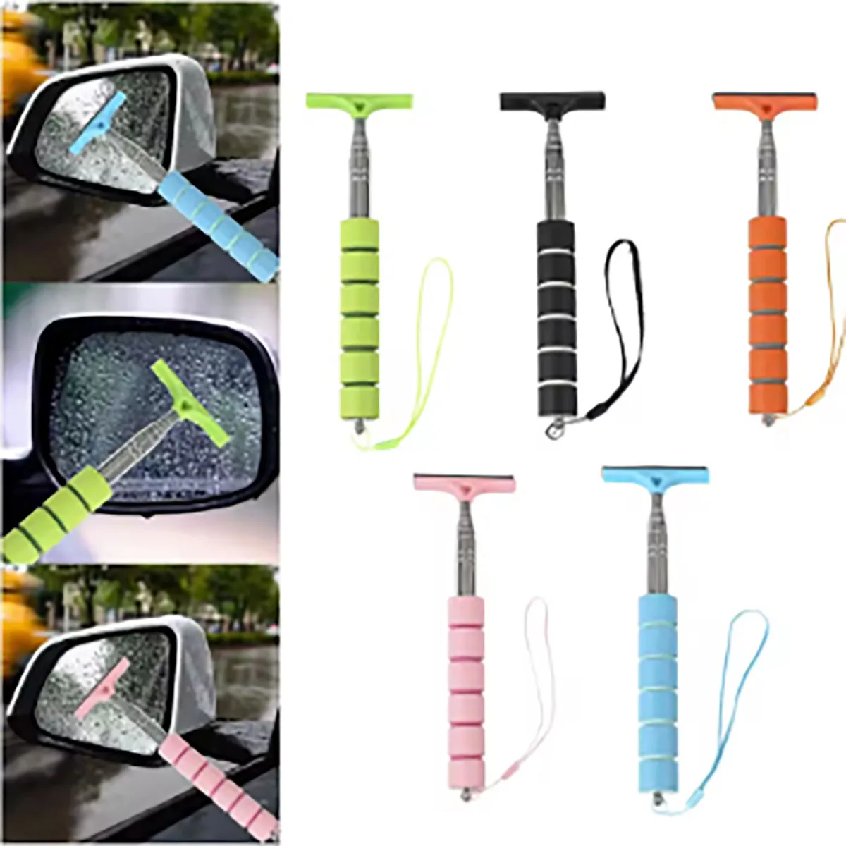 Car Rearview Mirror Wiper Stainless Steel Telescopic Long Handle Auto Mirror Squeegee Cleaner for Cl...