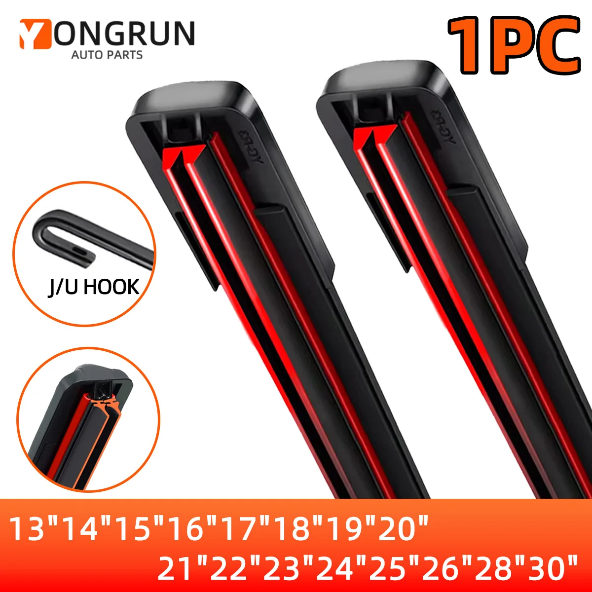YONGRUN 1PC Wiper Blade Car Windshield Wiper Blade Universal J/U Hook Boneless Double-Layer Rubber S...