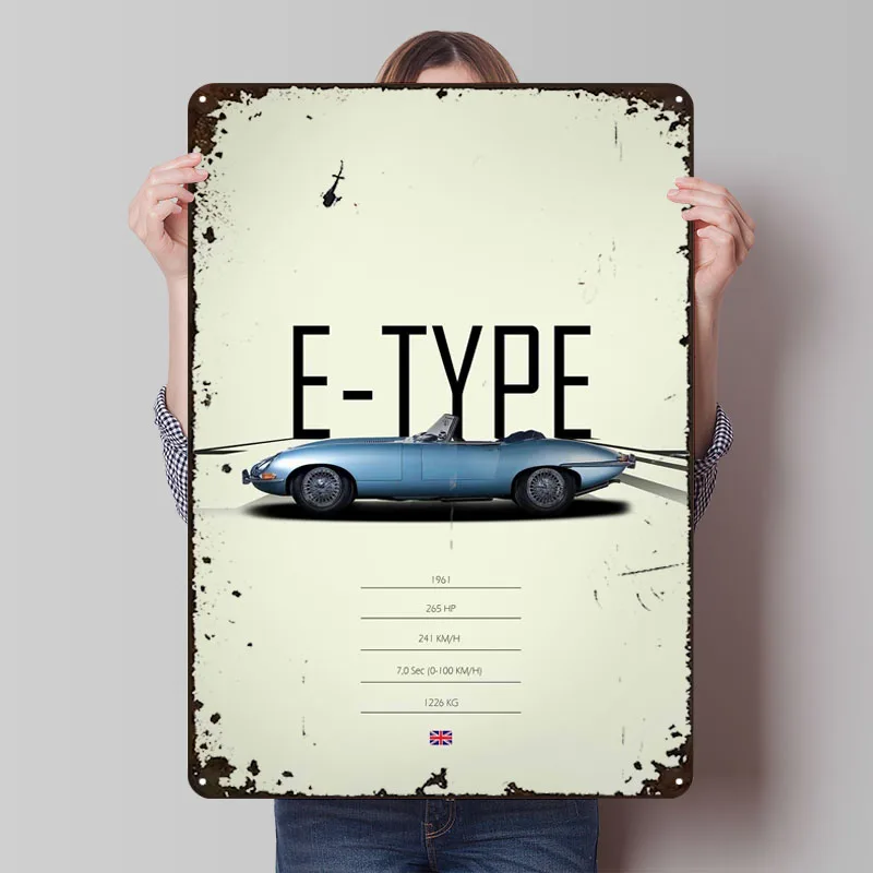 1961 Jaguar E-Type Metal Signs Vintage Car Poster Home Decorations ...