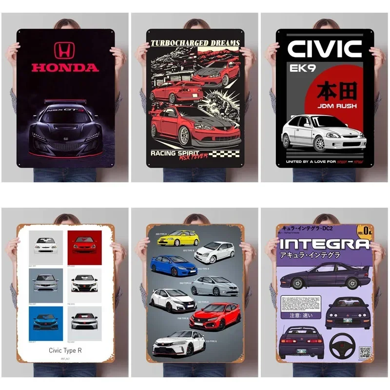 Honda Sign Cars Poster Home Decoration Living Room Retro Metal Tin Sign Plaque for Garage Wall Art D...